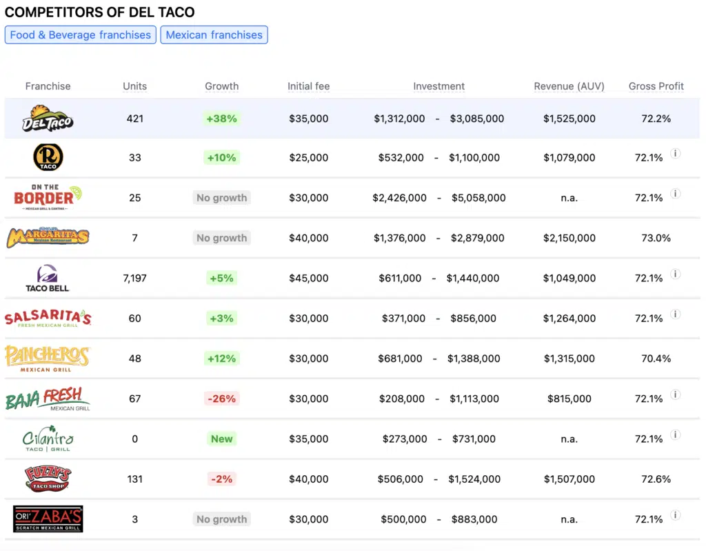Del Taco Franchise FDD, Profits & Costs (2025)