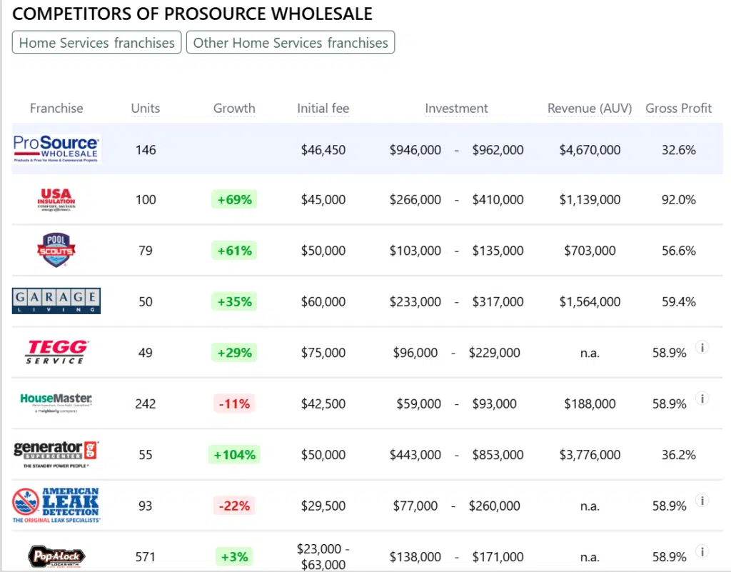 How much does it cost to start a ProSource Wholesale franchise? It costs on average between $946,000 – $962,000 to start a franchised center.