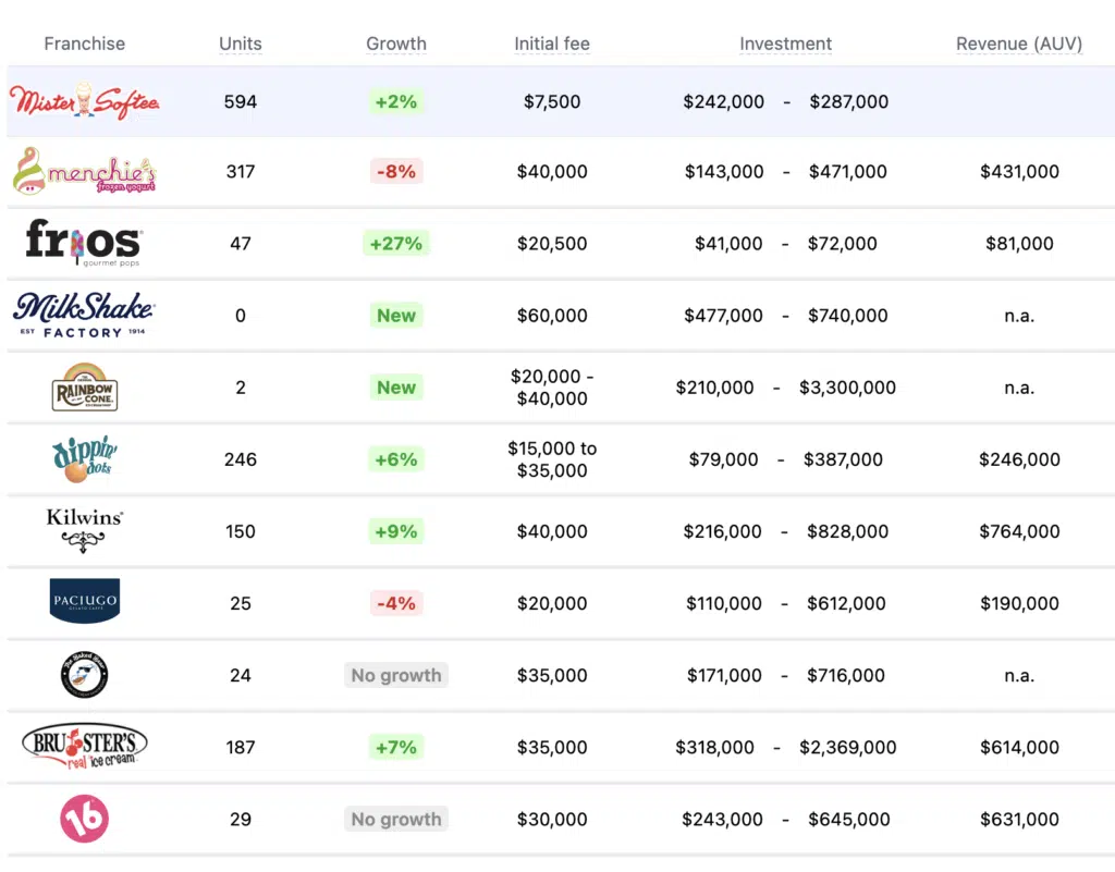 Yet, similar ice cream franchises in the industry charge an average of 6% in royalty fees and 2% in advertising fees ( e.g. Menchie’s).
